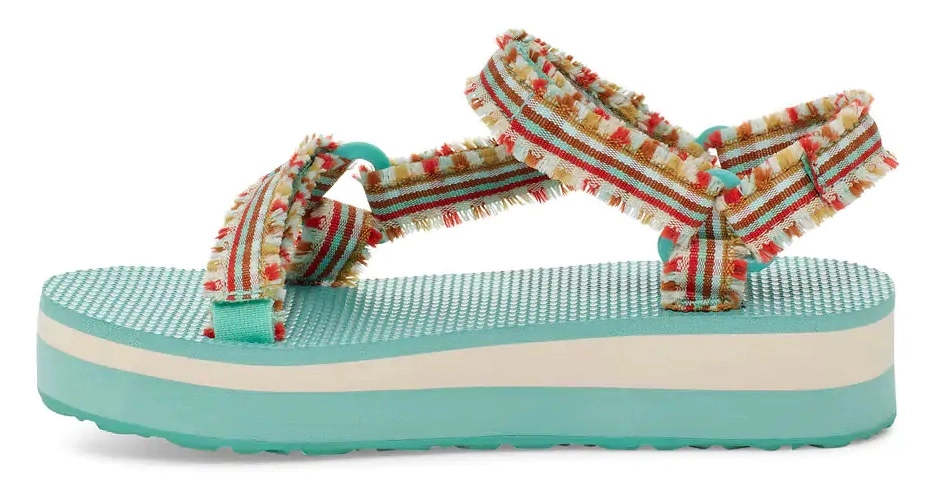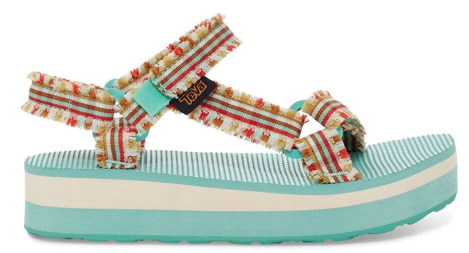 Deze sandaal komt uit de serie Midform Fray van het merk Teva. Dit is een nieuwe uitvoering van een populair Teva model. De verstelbare bandjes zijn voorzien van een franje, wat extra flair geeft aan de sandaal. De zool heeft een lichtgewicht EVA-schuim middenzool, wat voor extra demping en comfort zorgt. De rubberen buitenzool is slijtvast en geeft extra grip. Dankzij klittenbandsluiting zijn de sandalen gemakkelijk aan en uit te trekken.
