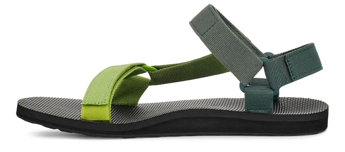 Deze sandaal komt uit de serie Original Universal van het merk Teva. Dit is een van de eerste Teva sandalen en blijft populair. Een milieuvriendelijke sandaal gemaakt van synthetische en plantaardige materialen en gerecycled plastic. De robuuste bandjes voelen fijn aan op de huid en zijn verstelbaar zodat ze altijd comfortabel zitten. De universele klittenbandsluiting zorgt ervoor dat ze gemakkelijk aan en uit te trekken zijn. De robuuste EVA rubberen zool zorgt voor extra comfort en demping en biedt ook nog eens extra grip.