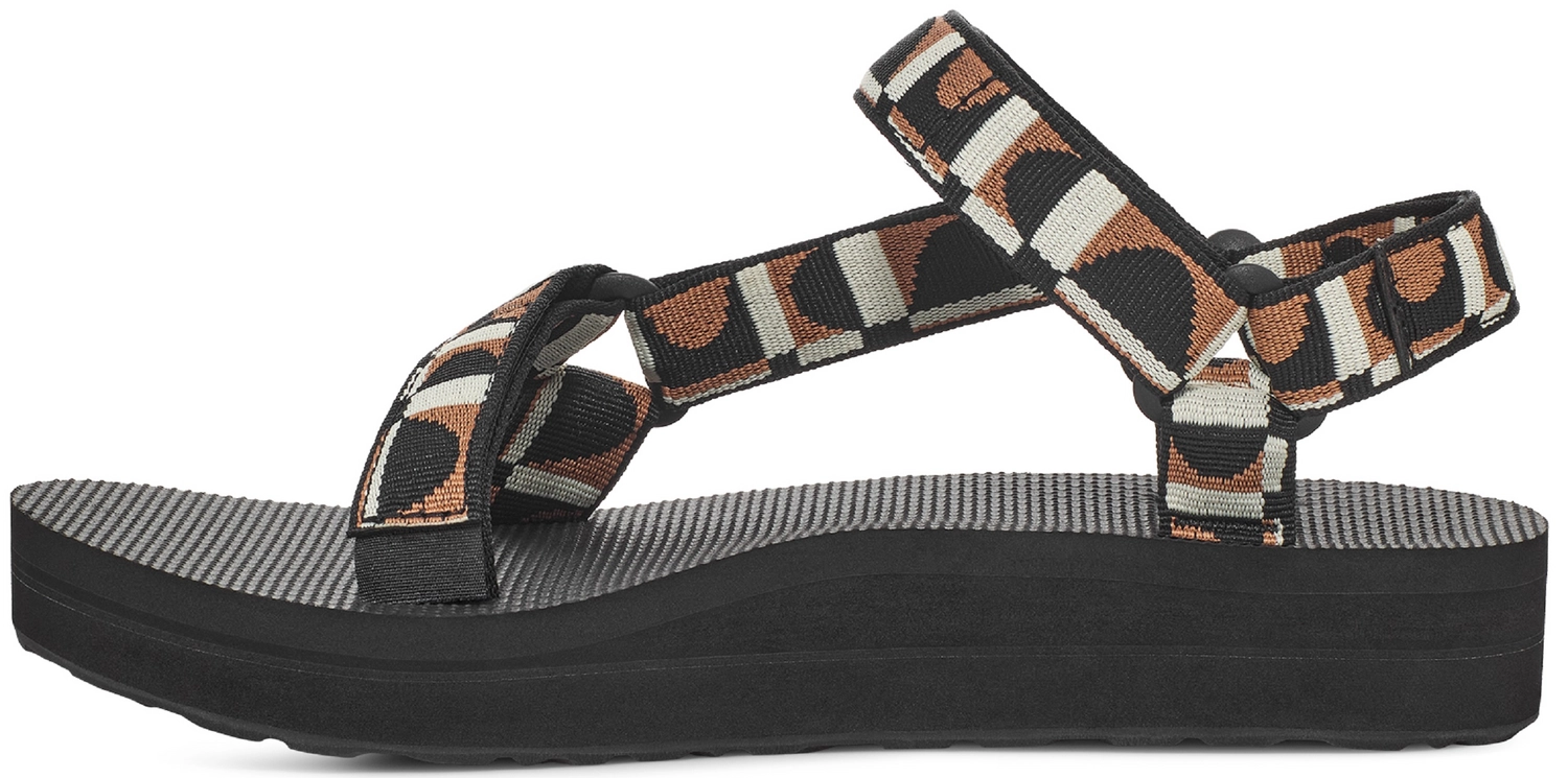 De Teva Midform Universal sandaal is stijlvol en comfortabel. De sandaal valt op door de fijne bandjes en een dikke rubberen zool. De enkelbanden zijn van textiel en hebben een fijne pasvorm door het universele bevestigingssysteem. De rubberen zool biedt een stevige grip voor natte omstandigheden. Het zachte EVA voetbed werkt dempend en is voorzien van een antibacteriële laag, zodat er zo min mogelijk ongewenste geuren kunnen opkomen