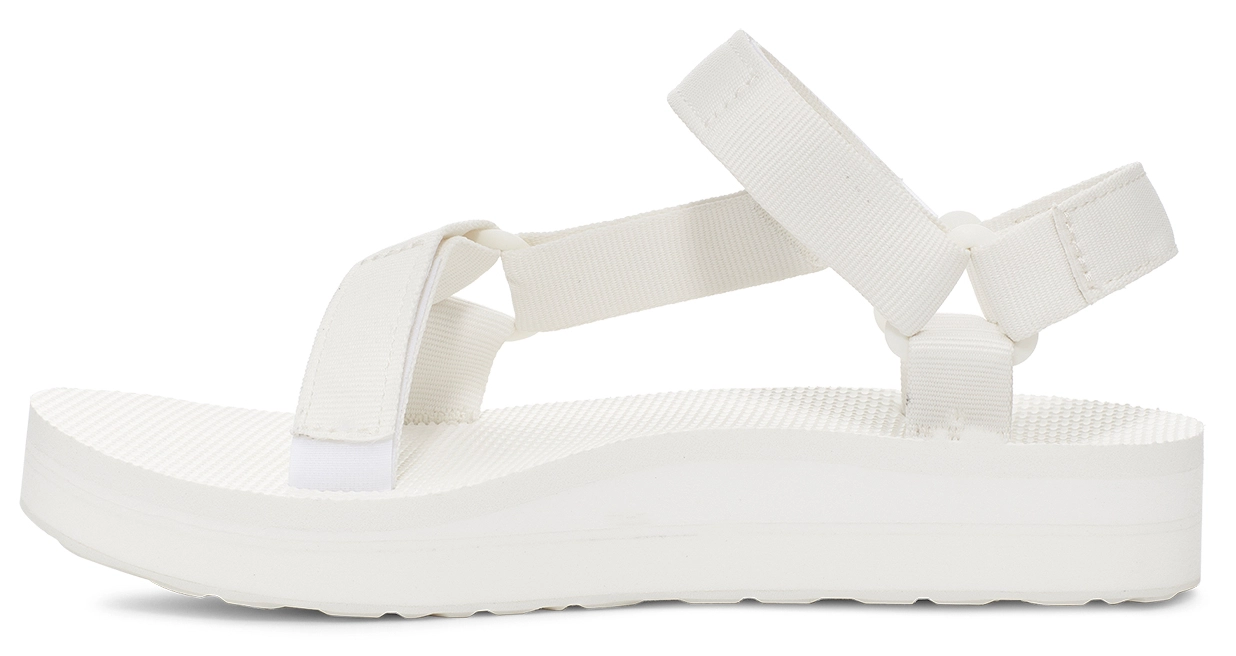 Deze sandaal komt uit de serie Midform Universal van het merk Teva. Deze lichtgewicht sandaal heeft een frisse uitstraling en een plateauzool van 3,2 cm. Gemaakt van textiel bevat deze sandaal ook waterbestendig en sneldrogend polyester. De bandjes met universele klittenbandsluiting voelen fijn aan op de huid en zijn op meerdere plekken te verstellen voor de perfecte pasform. De EVA rubberen zool heeft een antibacteriële laag en biedt optimale ondersteuning en extra grip dankzij de Durabrasion zool.